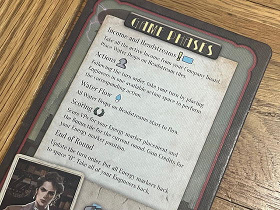 Each round, players take turns performing actions: building structures, upgrading technology, producing energy, or claiming contracts. The game uses a tight action selection system, with limited spaces for each type of action. If someone builds a certain building before you, you may be locked out for the round. This scarcity drives competition and forces players to prioritise ruthlessly. Should you rush to build a conduit before someone else claims the best spot? Or should you wait and produce energy while the water is flowing, risking it being directed away?
