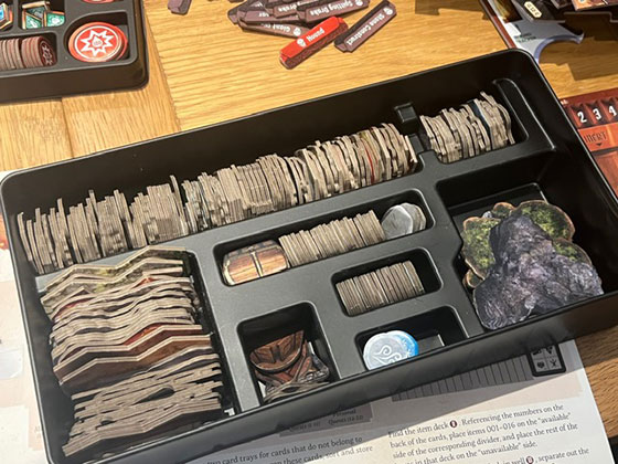 The box insert and storage system have been redesigned from the ground up. The original game’s sprawling components were notoriously difficult to organise. Gloomhaven: Second Edition includes a custom insert with labelled compartments for cards, tokens, miniatures, and map books. Setup and teardown are significantly faster, and the game is easier to store and transport. The box itself is sturdier and more compact, despite containing more content.